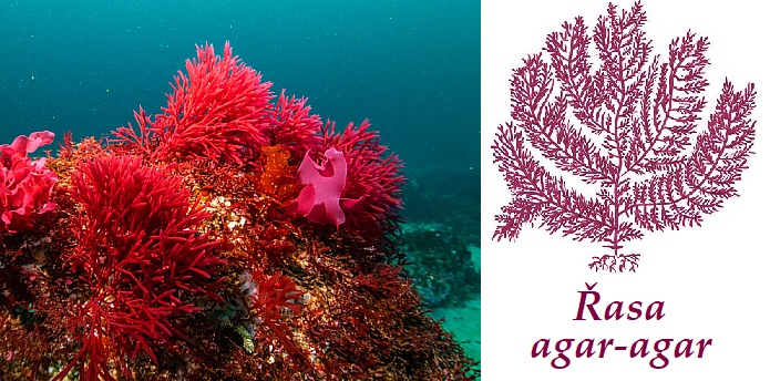 Řasa agar agar účinky na zdraví co léčí použití užívání využití dávkování co sbíráme pěstováníAgar-agar je řasa s latinským názvem Gelidium amansii. Patří do čeledi gelidiaceae, česky gelidiovité. Jaké látky obsahuje? Podstatný obsah představuje asi 95 % polysacharidů částečně esterifikovaných kyselinou sírovou. (Obsah síry je nestabilní - pohybuje se v rozmezí 0,5 - 5 %.) Agar má dvě složky - agarózu a agaropektin. Agaróza má lineárně uspo řádány zbytky D-galaktózy a anhydro-L-galaktózy; agaropektin tvoří D-galaktózy esterifikované kyselinou sírovou. Nacházejí se zde také zbytky látek bílkovinného charakteru, které zůstaly po předcházejícím umělém zpracování řas.