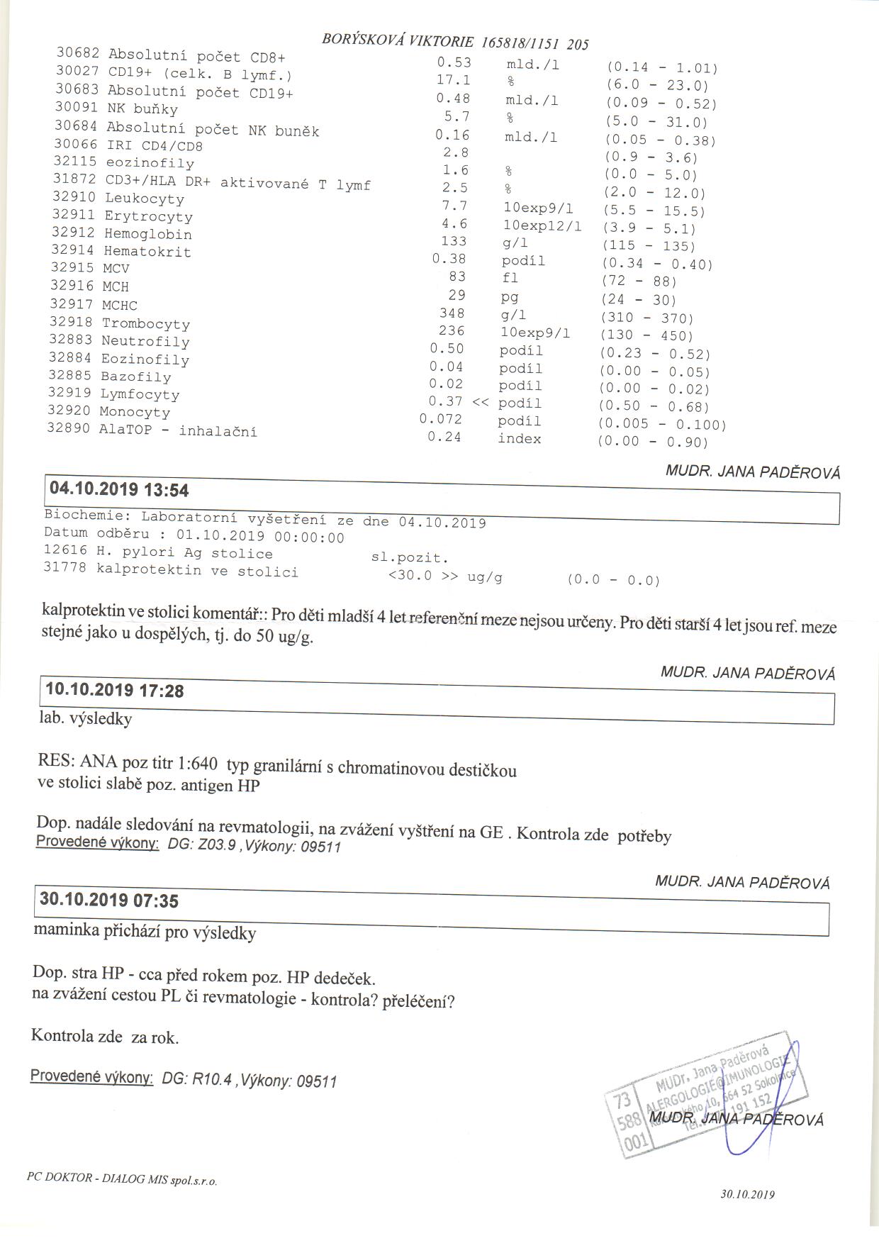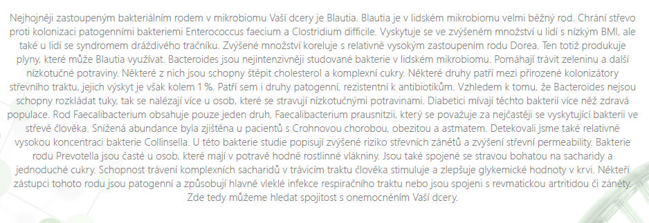 Dobrý den, pane doktore. Vážený pane doktore. Posílám informace o nemoci mojí dcery + kroky, které jsme ve snaze o její uzdravení absolvovali. Moje dcera má diagnostikováno dětské revma, séronegativní – juvenilní idiopatická polyartritida (otok obou ukazováčků na nožičkách a klíční kosti) + za rok 2019 byla 4x atatka uveitidy. Po 2,5 letech snažení - úprava stravy + suplementy (probiotika, prebiotika, odparazitování, butyrát, fytoterapie, omega 3, kurkumin, multivitaminy, multiminerály, různé podpůrné terapie – Bicom, Kvantové terapie, Plasmová terapie, Psychosomatika) se nám částečně podařilo dostat se do remise a pořešit střevní potíže, přesto však otoky ukazováčků u nožiček a otok klíční kosti přetrvává. Oko je teď v klidu. V nemocnici navrhují léčbu metrotexátem a jelikož ten ve většině případů na oko nestačí, je zde myšlenka biologické léčby – pakliže by se to oko vrátilo. Udělala jsem časovou osu dceřiného života, aby to bylo přehlednější: 1. Porod komplikovanější, pupeční šňůra byla omotána 2x kolem krku, malá nebyla přidušená, neměla ani žloutenku. 2. 1. noc po narození zvracela plodovou vodu 3. 10 dní po narození hospitalizace v nemocnici – zvracela mi umělé mléko – testy nic neprokázaly (kojení mi moc nešlo, malá měla furt hlad a moje mléko ji nestačilo, kojila jsem jen 5 týdnů po porodu, ale vždy s příkrmama), měli jsem Nutrilon, jelikož však měla koliky, přešli jsme na Nutrilon HA – předtrávené mléko. 4. 3 měsíce po porodu – kampylobakterie – léčeno Sumamed 5. 9 měsíců po porodu – Neštovice – léčeno Herpesin 6. 1. rok - Dovolená Řecko – dovezli jsme si molusky na prstíku na ruce, ale zmizelo to samo 7. 1. rok a 4 měsíce – kousla nám do citronu a mela v puse bílou plíseň a afty – léčilo se jen fialovou vodičkou. 8. 1. rok a 7 měsíců - všimla jsem si otoku na ukazováčku na levé noze 9. 1. rok a 9 měsíců - Aplikace trispanu do výpotku (4,5 mm) u tohoto prstíků, diagnóza juvenilní idiopatická polyartritida – séronegativní. 10. 2. roky a 7 měsíců – otok klíční kosti 11. 2 roky a 8 měsíců – angína – antibiotika Censil, prstík po antibiotikách mírně natekl a je nateklý, nesplasklo to. 12. 2 roky a 9 měsíců – orosení v pravém oku – 1. ataka uveitidy v levém oku, aplikace Fluconu 13. 2 roky a 11 měsíců – 1. ataka uveitidy v pravém oku, aplikace kortikoidních kapek a kortikoidní mastičky 14. 3. roky a 3 měsíce – 2. ataka uveitidy v pravém oku, aplikace Fluconu a kortikoidní mastička. 15. 3. roky a 5 měsíců – 3. ataka uveitidy v pravém oku, aplikace Fluconu a kortikoidní mastičky. 16. Následně pak 4. ataka uveidity, aplikace Fluconu. 17. Po velkých dávkách vitaminu C pak otekl druhý prst na pravé nožce. Brala 1000mg 3x denně. To bylo loni v dubnu. 18. Je to 3 měsíce zpět, co jsme byly na kontrole v nemocnici a na ultrazvuku i na rentgenu našli zesílenou nártovou kost + malý zánět v prstíku, do kterého se píchal kortikoid. Magnetická rezonance neukázala změny v této zesílené kosti, nicméně ukázala, že v levé nožce se něco děje i v prostředníčku. 19. Před týdnem jsme byli na kontrole na revmatologii, klíční kost a ukazovák na levé noze jsou v klidu, ukazovák na pravé noze opět výpotek 1,5 mm velký. Celkové zhodnocení lékařky bylo, že za tu dobu, co ultrazvukem pozorujeme zánět v klíční kosti i ukazováčku na nožce se zánět změnšuje. Nicméně tam stále je. Doktorka navrhuje do výpotku opět aplikovat injekčně kortikoid. V roce 2018 jsme nechali dceři dělat testy na potravinové intolerance, genetiku a mikrobiom – vše v zahraniční laboratoři. Výsledky mám v 74 stránkovém protokolu, který je moc velký na zaslání mailem, ale v případě Vašeho zájmu pošlu přes uloženku. Máme tyto výsledky: Mikrobiom vyšel velmi špatně (na žebříčku od 1-14 měla malá číslo 14), navíč přemnožené kvasinky, E. Coli, helicobaktera a přemoženou Prevotellu, špatně vyšlo i trávení tuků a škrobů, geneticky daná laktózová intolerance, geneticky daná porucha metabolismu lipidů, Homocystein a genetický předpoklad pro Histaminovou intoleranci. APOE směřují kí Altzheimerově chorobě a v případě E2/E4 metabolismu apolipoproteinu- tedy vztahuje se k cholesterolu a tukům. LCT- laktózové intolerance HtHFR se týká homocysteinu VDR se týká vitaminu D GSTM1 se týká enzymu glutathione S-transferasy- oxidace volných radikálů Když nám pak krevní testy prováděla pediatrička, laktózová intolerance ani histaminová intolerance se neprokázali. Jako doplňky stravy jsme užívali tyto suplemety - začali jsme od 08/2019, zařazovali jsme po týdnu, na plných dávkách jsme byli od od konce 09/2019 do 03/2020 Probiotika 30m - https://www.mitolife.cz/tisso-produkty/pro-em-san-junior/ Podpora sliznice 3x denně - https://www.mitolife.cz/tisso-produkty/pro-mucosa/ Prebiotika 1 odměrka 2x denně - http://prebiolax.cz/ Kurkumin 1 kapsle denně - https://www.mitolife.cz/tisso-produkty/pro-curmin-complete-ii/ Omega 3 10ml denně - https://www.mitolife.cz/tisso-produkty/pro-omega-ultra-1-baleni/ Butyráte 1 tableta denně Vitamin D+K2 (2 kapky denně), vitamin D 3 kapky denně Antioxidant 1/3 pytlíku denně - https://www.altrishop.cz/Altrient-Glutathione-lipozomalni-doplnek-stravy-d1.htm?tab=download#anch1. Další vitamíny a minerály: https://zdravavolba.cz/produkty/magne-harmony/ https://zdravavolba.cz/produkty/anti-aging-vitamins/ https://zdravavolba.cz/produkty/anti-aging-minerals/ Dostala jsem tip ještě na bylinkové tinktury, tak jsme přidali 3x denně 3 kapky od těchto směsí: Světlík – Bylinná tinktura ze světlíku|Fytoterapie|Světlík|Bylinné kapky Autoimunol - https://www.tinktura.eu/cs/bylinkarovo-tajemstvi-by